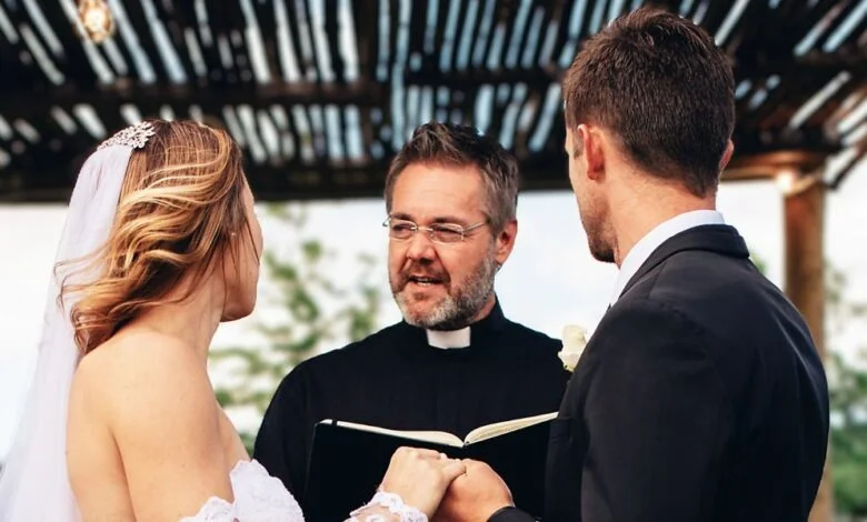 Un prete che parla con uno sposo | Fonte: Midjourney