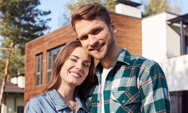 Una coppia felice davanti a una casa | Fonte: Midjourney